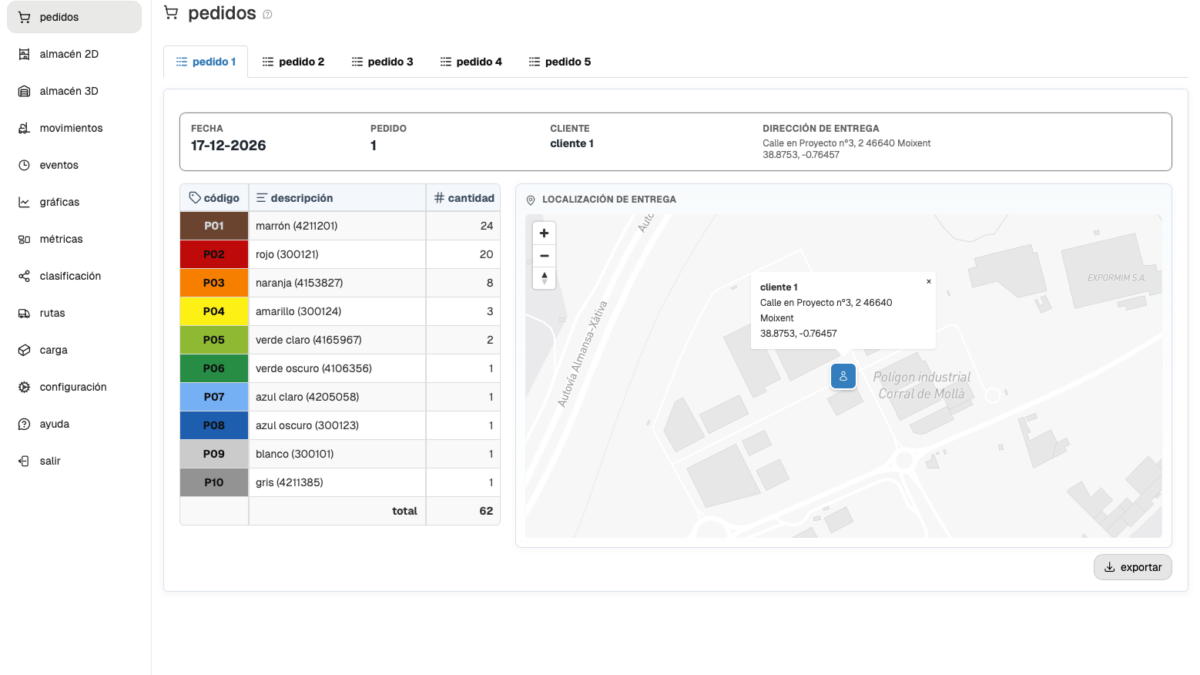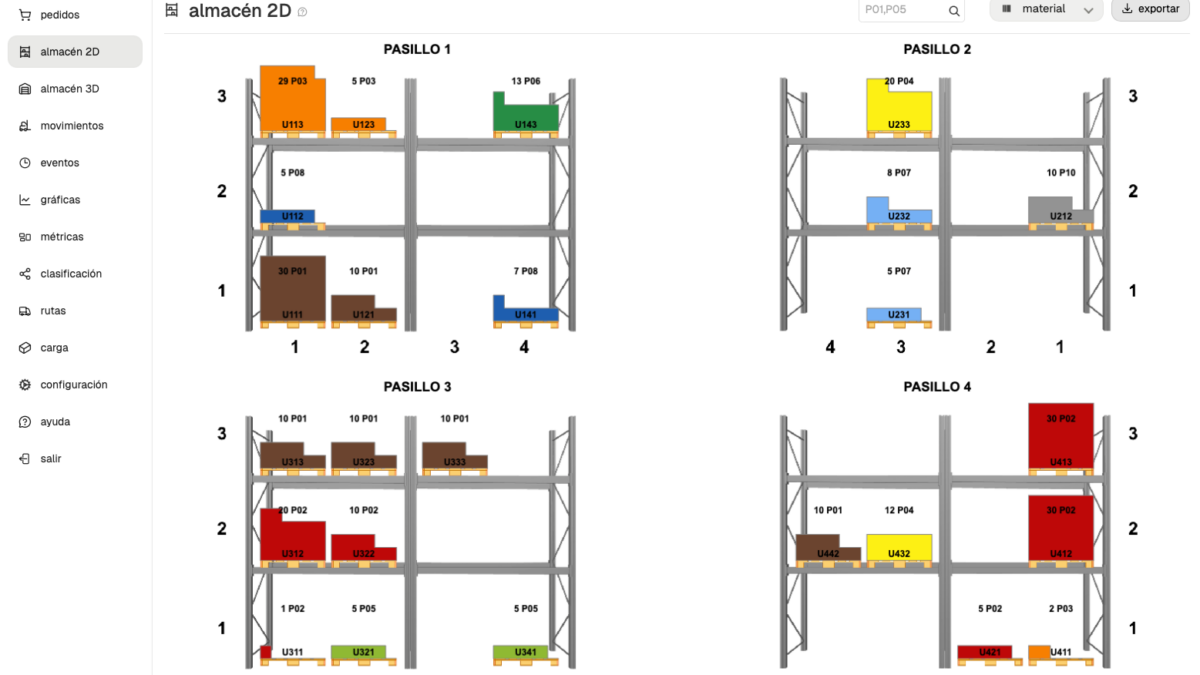 El software se sitúa claramente en el eje lógico, pero su impacto se extiende al resto de dimensiones. Permite visualizar el estado del almacén, registrar operaciones y gestionar información en tiempo real, integrando así el mundo físico con el digital.
