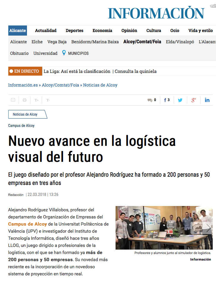 En fechas recientes, diferentes medios de comunicación incluyendo la web de nuestra Universitat se hicieron eco de LLOG – el juego de rol y de simulación logística que recientemente cumplió 3 años.