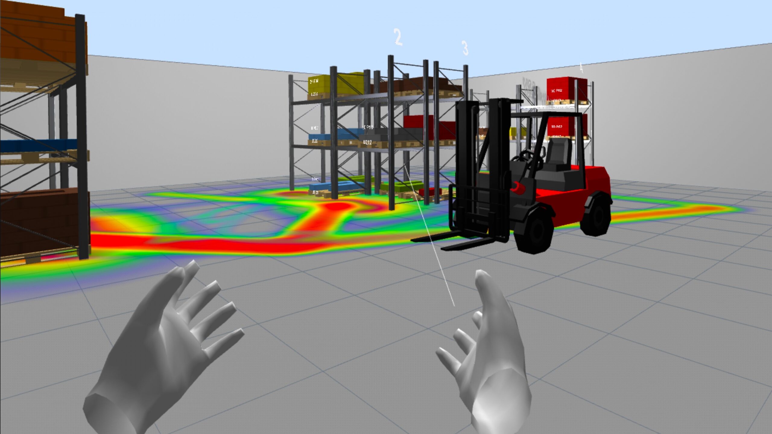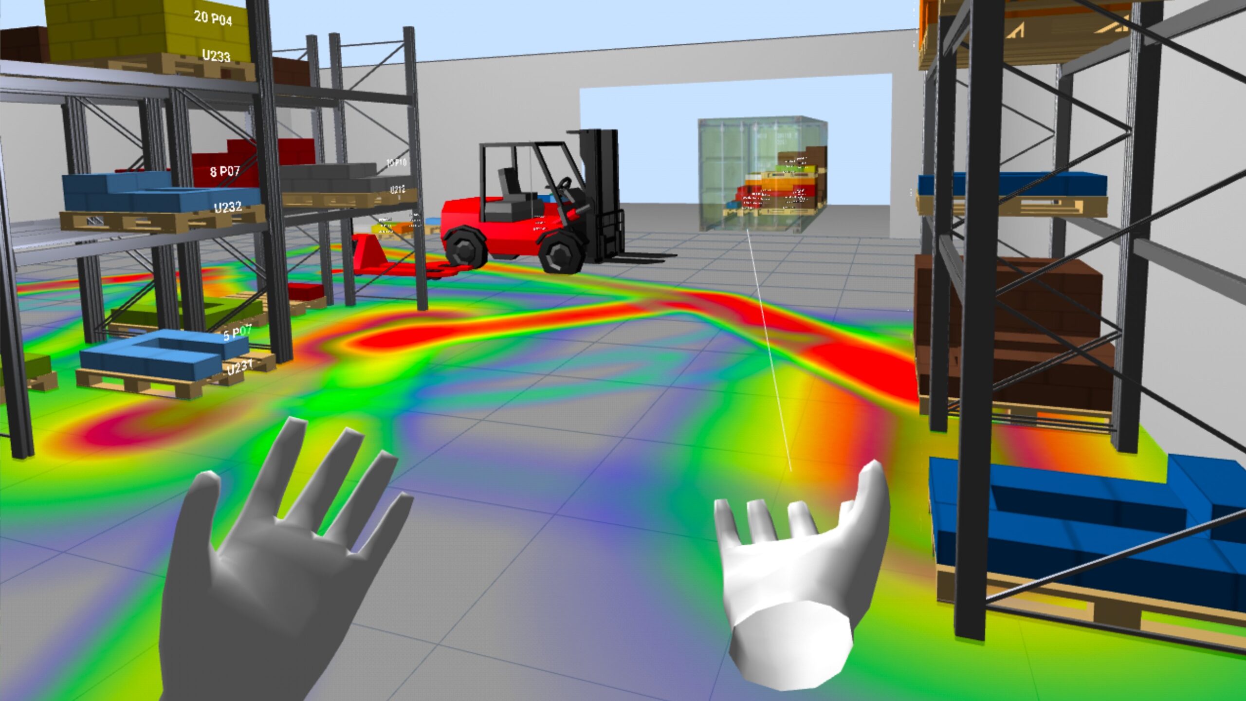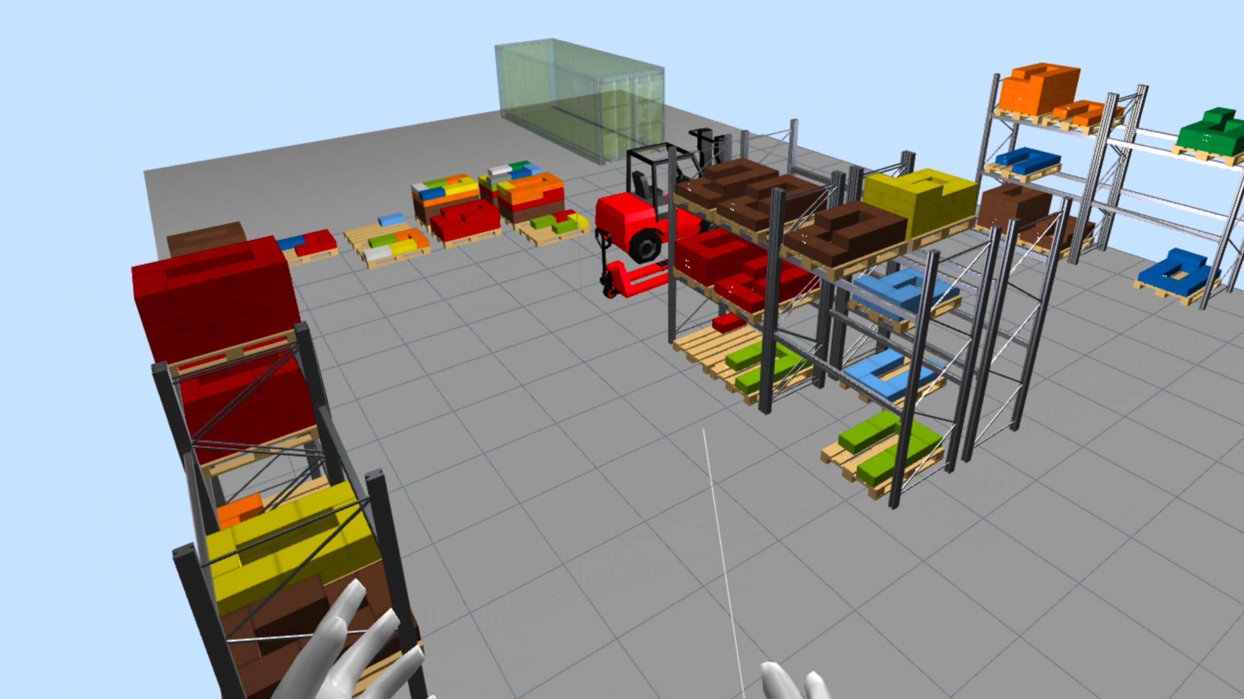 La funcionalidad de VR, por su parte, introduce un grado de inmersión muy superior. En un entorno de realidad virtual, el usuario deja de observar el almacén desde fuera y pasa a situarse dentro de él (tiene tele-presencia). Esta diferencia no es menor: la percepción de distancias, alturas, recorridos, congestiones y condiciones operativas cambia radicalmente cuando se vive en primera persona. Para la formación en logística, esta capacidad es extraordinariamente valiosa, porque permite entrenar la comprensión del flujo físico, la secuencia de operaciones y la interacción entre recursos sin necesidad de intervenir sobre una instalación real. En términos docentes, la VR favorece un aprendizaje experiencial mucho más sólido, especialmente en materias relacionadas con la distribución en planta, la manutención, la seguridad, el picking, la paletización, la carga y las expediciones.