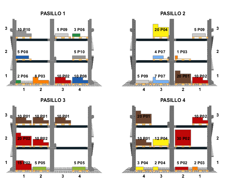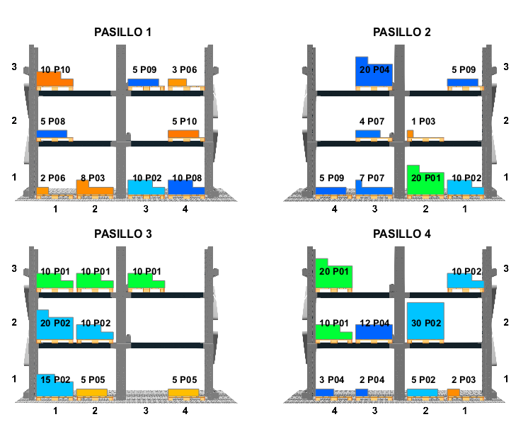 Pero todavía se puede ayudar más a la toma de decisiones. LLOG es capaz de representar el almacén (en 2D y en 3D) utilizando diferentes códigos de colores: