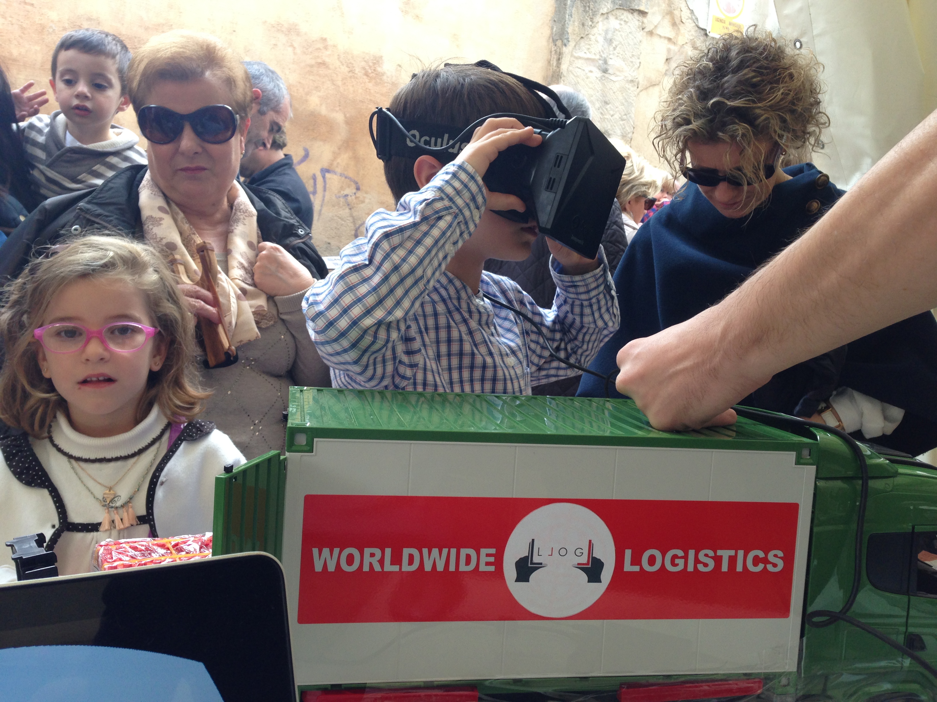 Una de las cosas que más llamó la atención fue la demostración que hicimos del almacén con realidad virtual. Con la ayuda de mi colega y amigo Jordi Tormo (de publiaescala), los niños y los mayores podían adentrarse en un almacén virtual gracias a las gafas 3D de Oculus Rift que llevamos para la ocasión (os hablaré de ello más adelante en otro artículo).