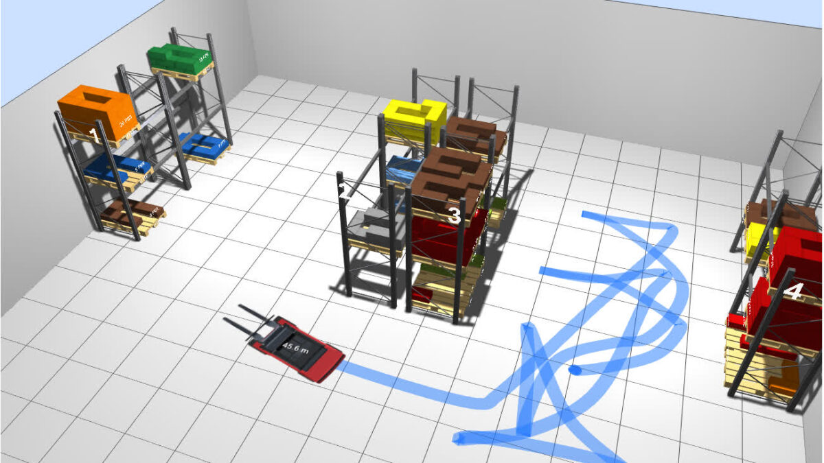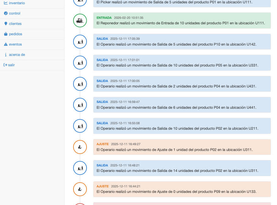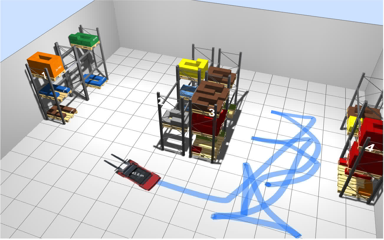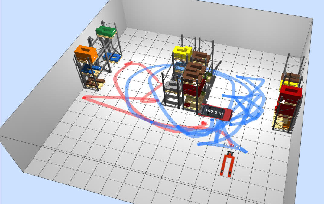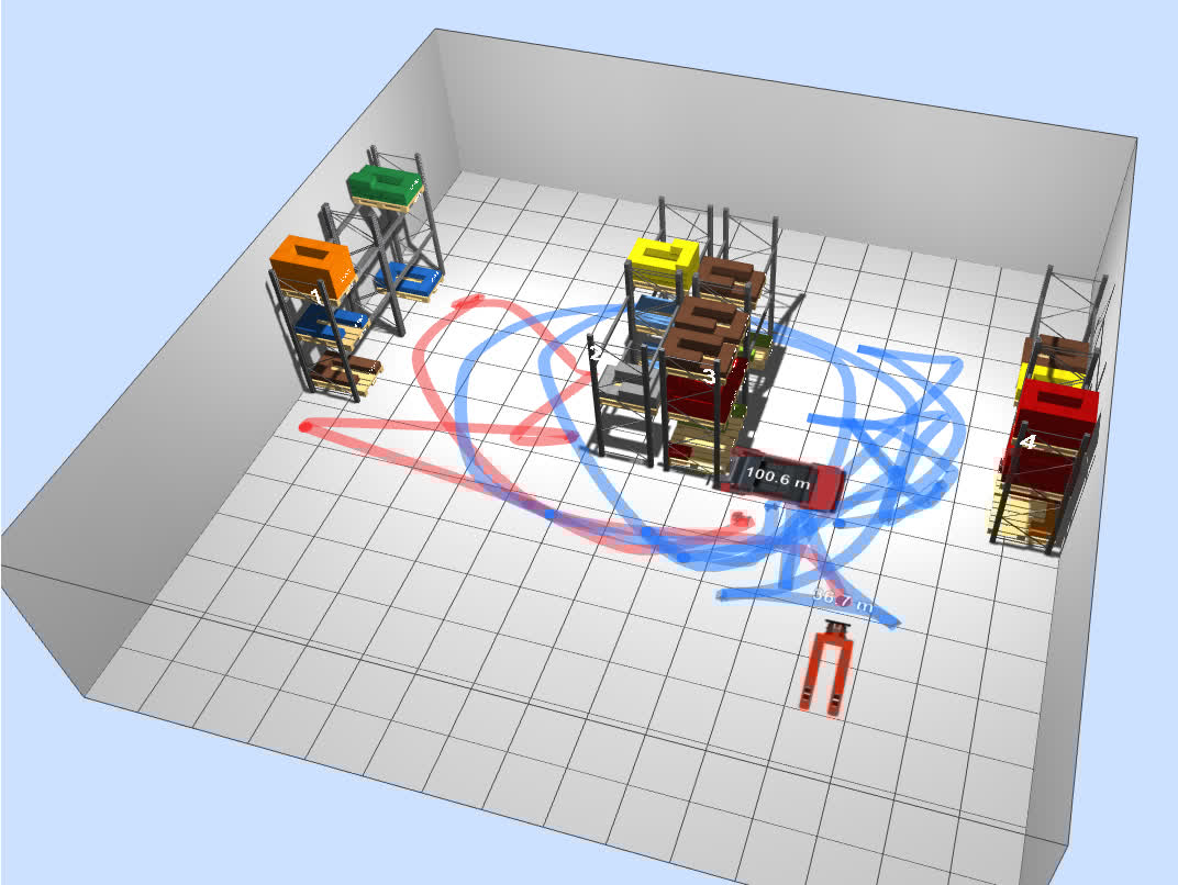 El objetivo es poder hacer seguimiento en tiempo real de los movimientos que mis alumnos hacen dentro del almacén, cuando adoptan los roles de preparador de pedidos (picker con transpaleta) y de reponedor (conductor con carretilla). El registro de los movimientos permite calcular diferentes métricas, y analizar los movimientos y el flujo de productos para tomar decisiones que permitan optimizar los procesos (transformación de pedidos de clientes a órdenes de picking, rutas en el almacén, ubicación de productos, reaprovisionamiento, oleadas de expediciones, etc.).