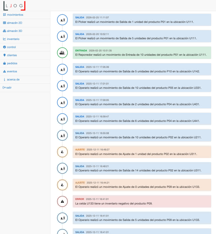Finalmente, la representación visual por capas, los recorridos históricos y los mapas de calor transforman la maqueta en un laboratorio analítico. No se trata solo de visualizar trayectorias, sino de generar información para la toma de decisiones basada en evidencias: optimización de rutas, rediseño de ubicaciones, reducción de congestión y mejora de productividad. En conjunto, la nueva versión de LLOG consolida un ecosistema formativo donde simulación, datos y mejora continua se integran de forma coherente y estratégica.