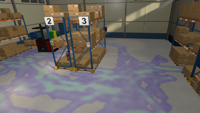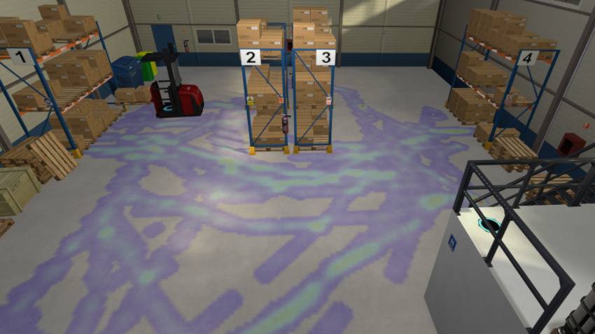 De forma muy sencilla se puede visualizar en realidad aumentada, el mapa de actividad de cada uno de los vehículos (transpaleta, preparador de pedidos). Al hacerlo, se muestra tanto la distancia total recorrida como la productividad del proceso (SKUs/h).
