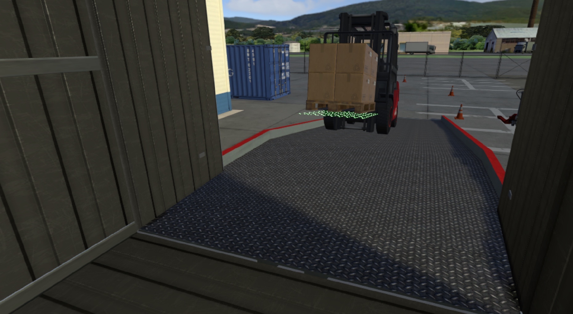 Las condiciones de luminosidad cambian en el exterior e interior del contenedor, así que eso puede dificultar la maniobra en el interior del contenedor, como ocurre en el mundo real.
