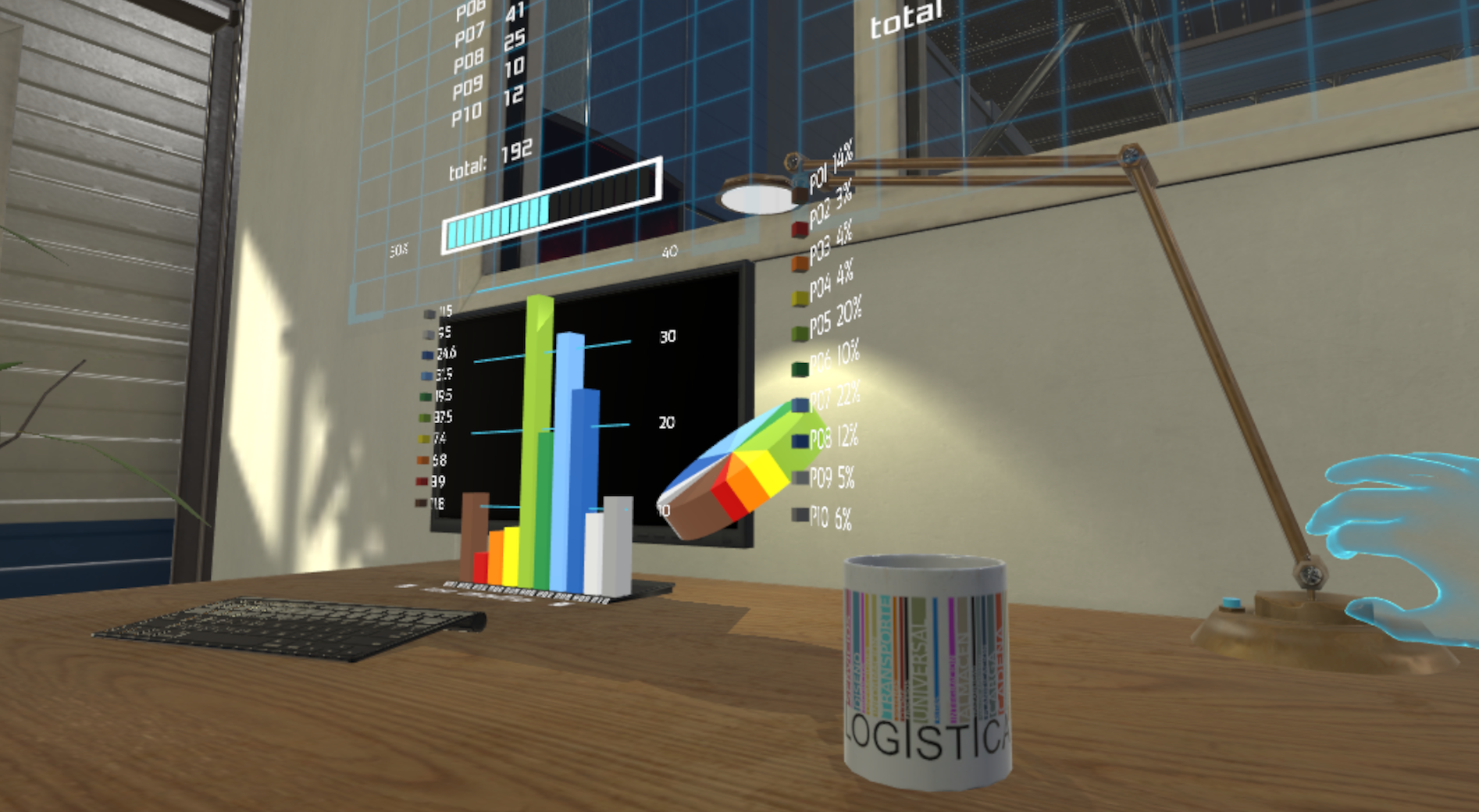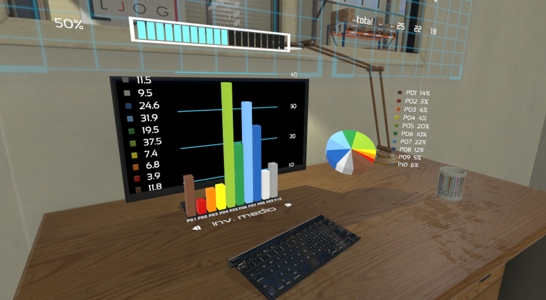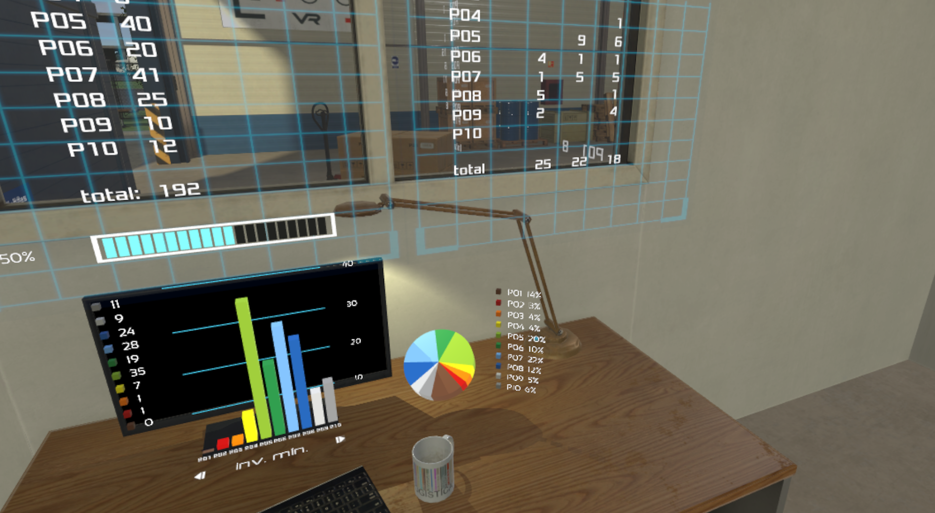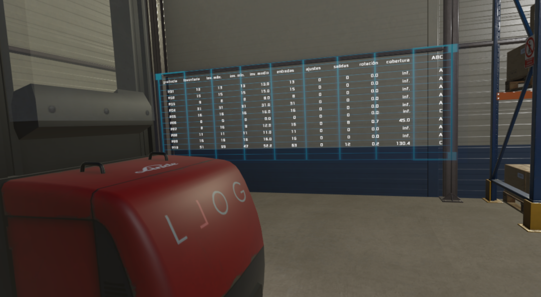 Una de las claves para poder mejorar los procesos productivos y logísticos es poder disponer de información útil, en tiempo real y en el lugar donde se toman las decisiones. En LLOG VR se desarrolla y se experimenta con nuevas funciones de logística visual que traducen datos del proceso en indicadores que son representados visualmente para facilitar las decisiones.