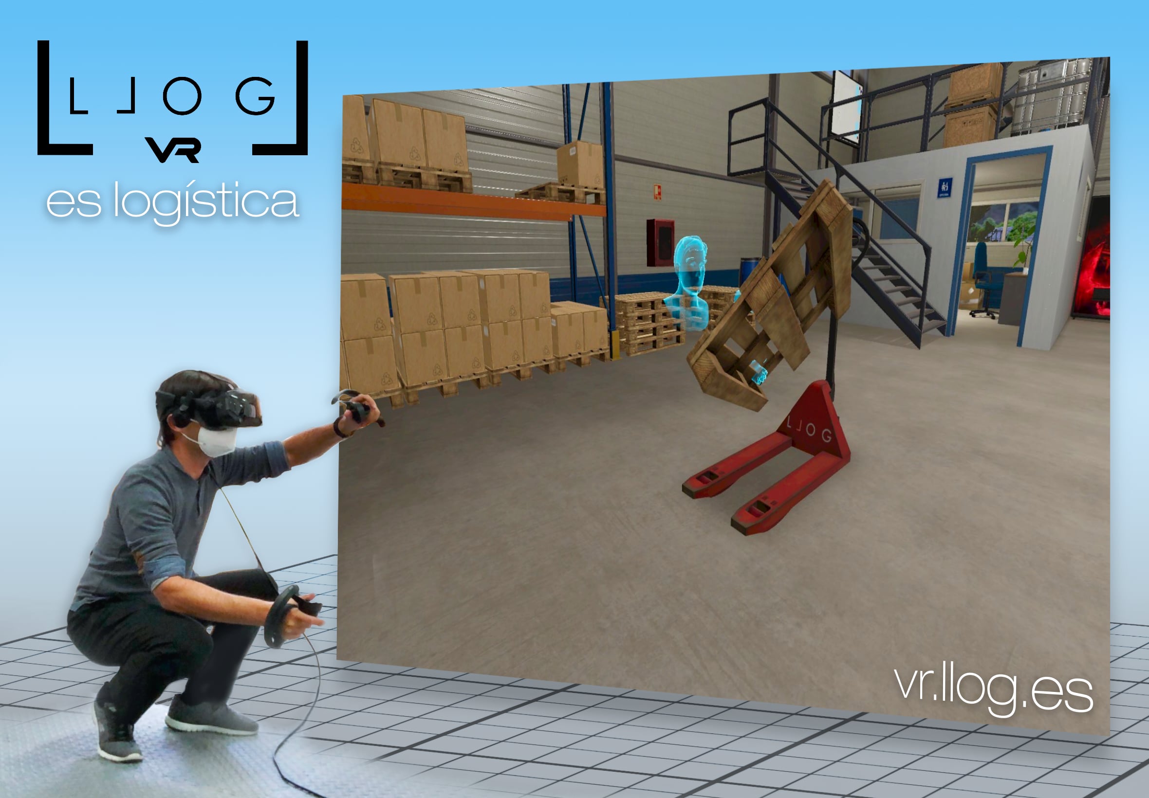 LLOG VR es un centro logístico construido en realidad virtual (VR – Virtual Reality). Se trata de una reproducción de un almacén real donde poder experimentar en primera persona todas las acciones y decisiones propias de los procesos logísticos (recepción, manutención, almacenaje, preparación de pedidos, expediciones, gestión de inventarios, etc.).