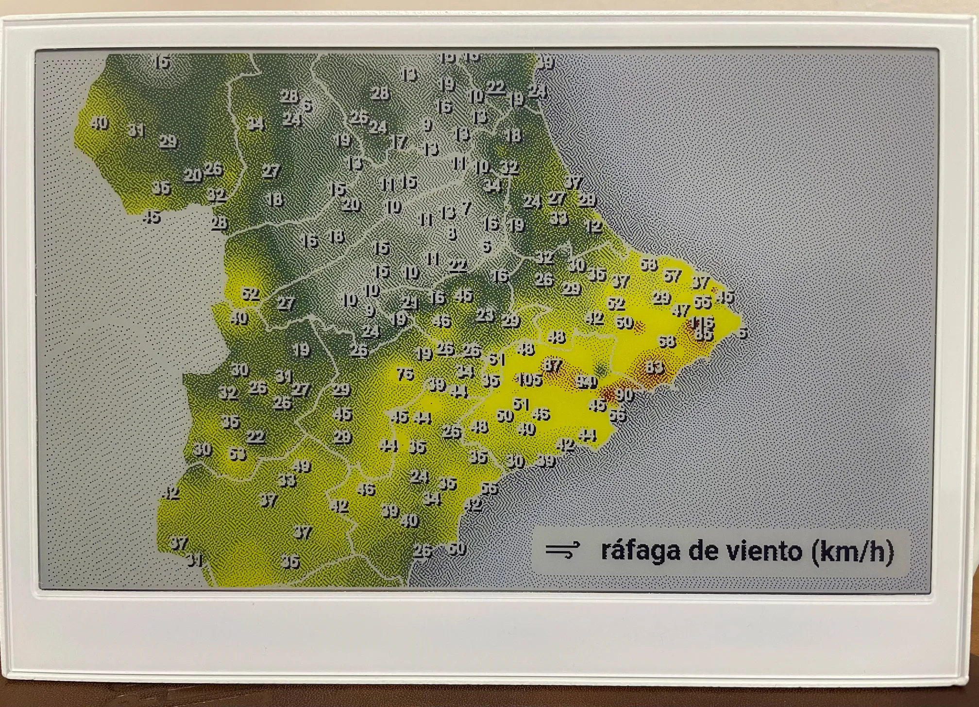El tiempo también se muestra en otras pantallas adicionales: Condiciones actuales, previsión para las próximas 12 horas, previsión para los próximos 5 días. Por supuesto, también muestra mapas del tiempo (AVAMET, Windy). El E1002 es especialmente útil mostrando mapas con gradientes de colores.
