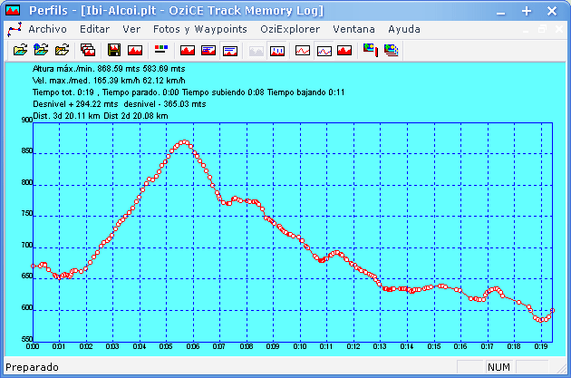 Hoy os presento un excelente programa, se trata de Perfils, realizado por mi colega Rubén Pérez (gran aficionado a la BTT). Este programa es de gran utilidad para analizar los perfiles de un track GPS. Una vez generado el track y volcado al PC, podremos abrirlo con Perfils y analizar nuestra ruta: ver distancia total recorrida, velocidades medias y máximas, desniveles acumulados, etc. También podremos representar el recorrido en 3 dimensiones y muchas más cosas que os cuento después.