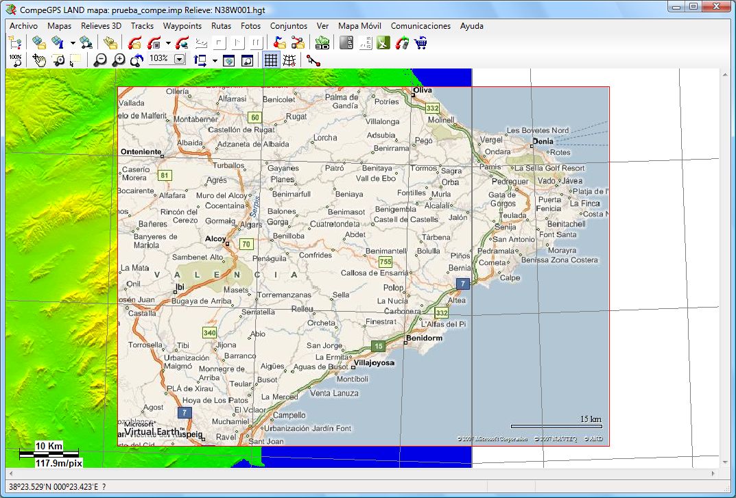 Ahora desde Rutas, ya es posible exportar información a este software: mapas calibrados en formato CompeGPS .IMP, waypoints y tracks. Aquí os dejo algunas imágenes de muestra: