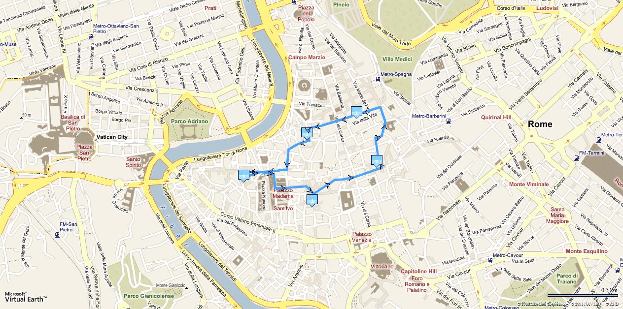 Como ejemplo de todo esto, os pongo dos imágenes del casco antiguo de la ciudad de [[Roma]] donde se puede observar las diferencias entre intentar moverse en esa zona de Roma en coche o moto, o ir andando.