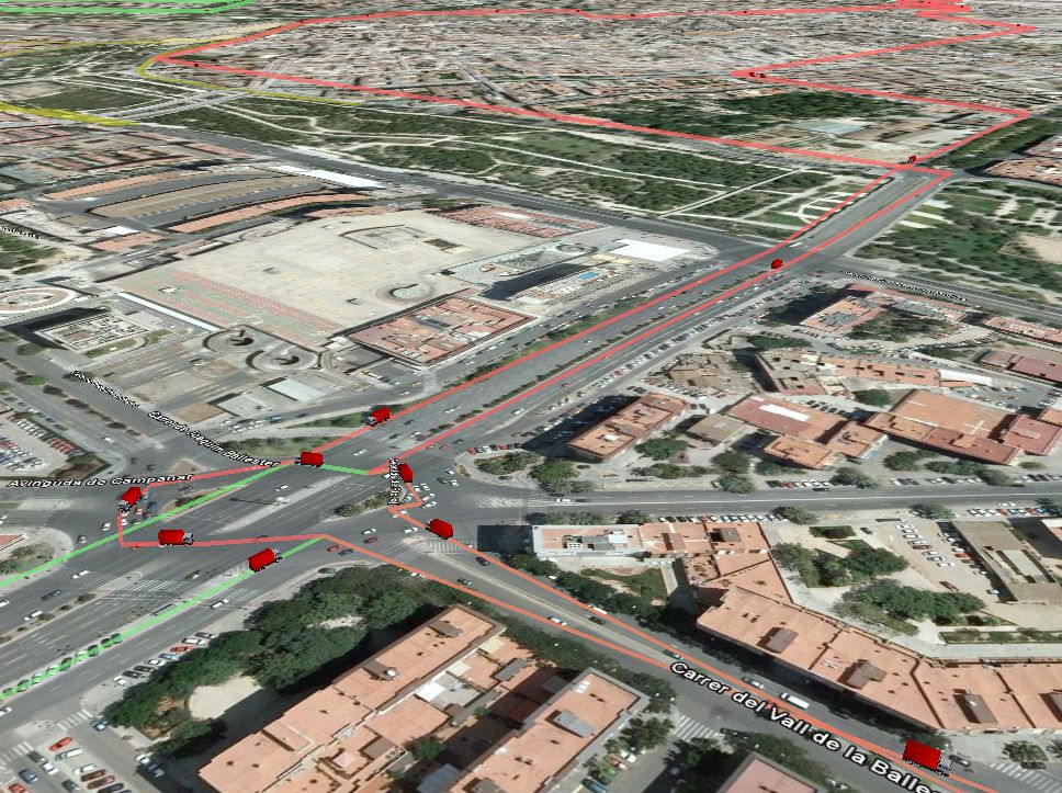 Pues sí, después de lo anterior, no me he podido resistir. Ahora en Rutas, también es posible visualizar los itinerarios resultantes de la optimización en [[Google Earth]], y con un ‘camioncito’ virtual que indica el vector (o sentido) del recorrido. Ahí van algunas imágenes sugerentes…