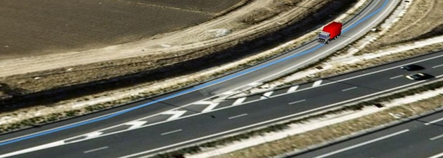 Recuerda que toda esta información se puede exportar a otros formatos (.gpx, .kml, .ov2, .itn) y a dispositivos de navegación por GPS. Hay van dos imágenes del mismo tramo exportado a Google Earth con el camión en 3D.