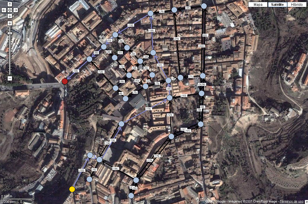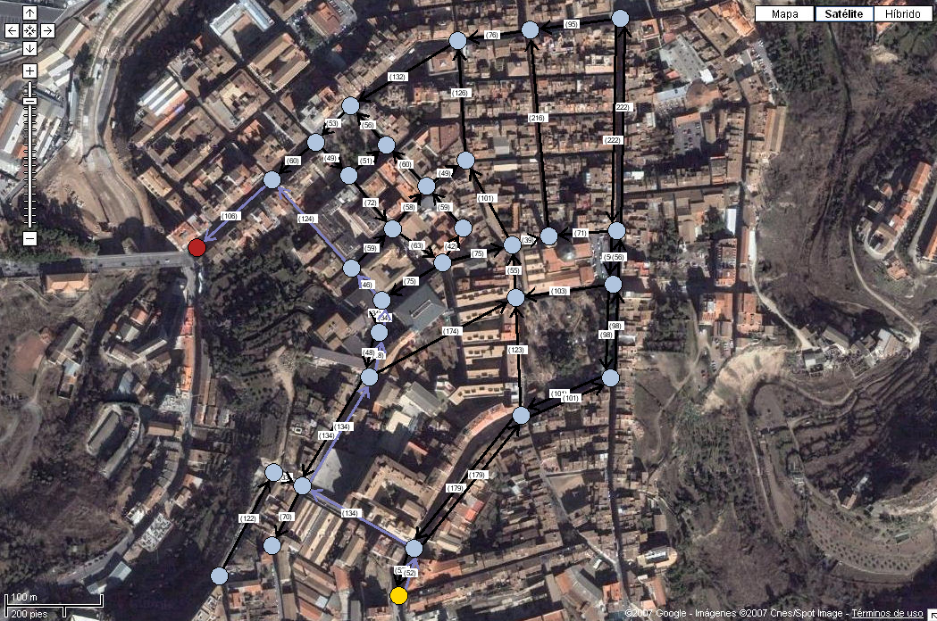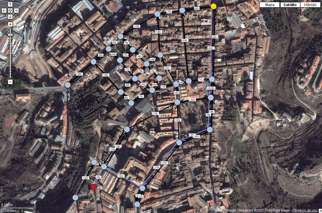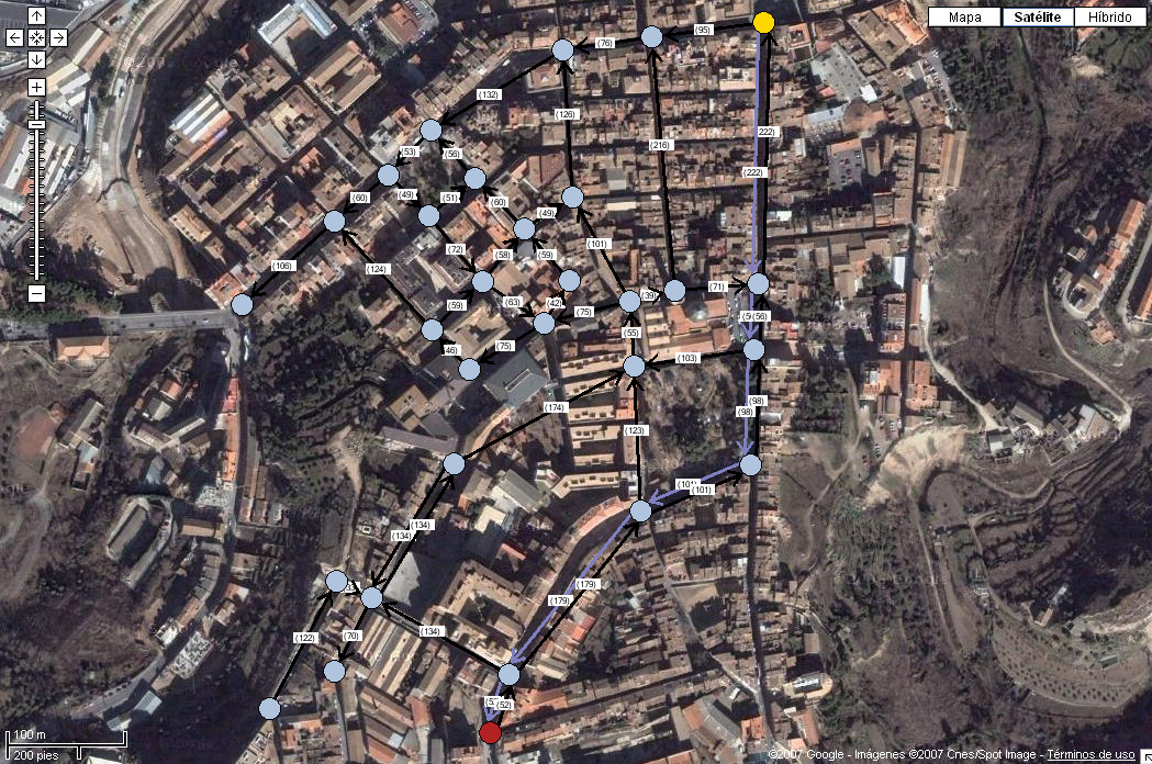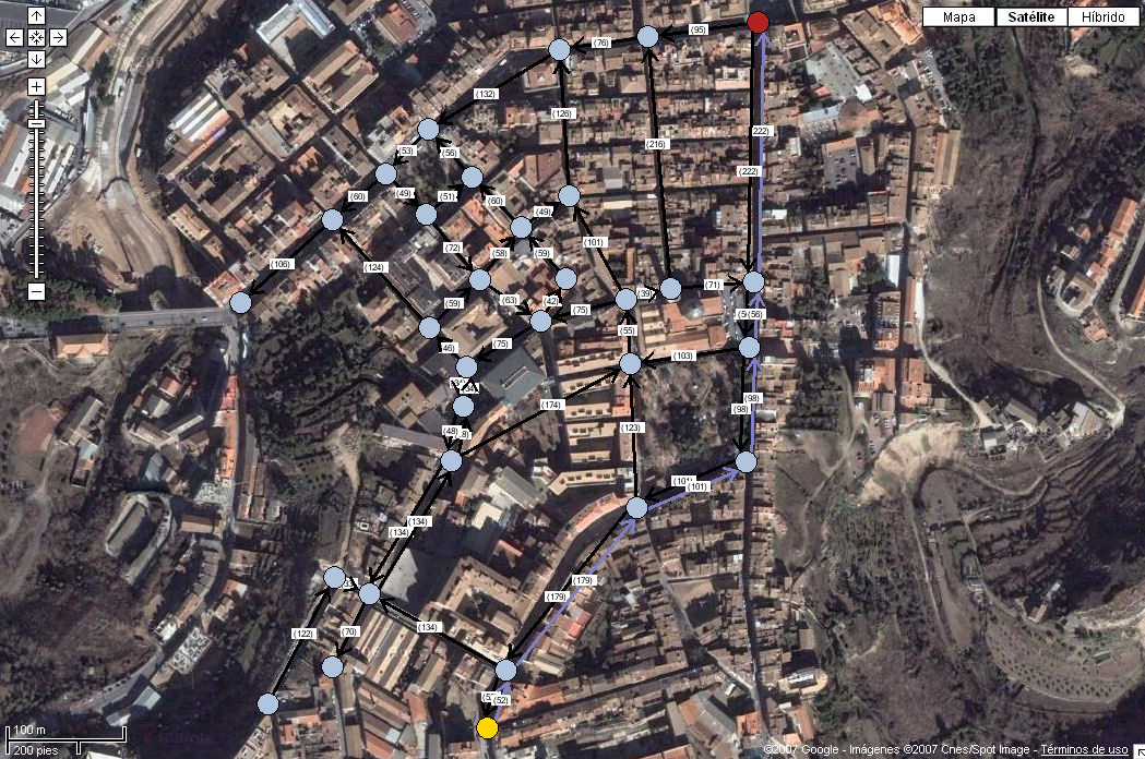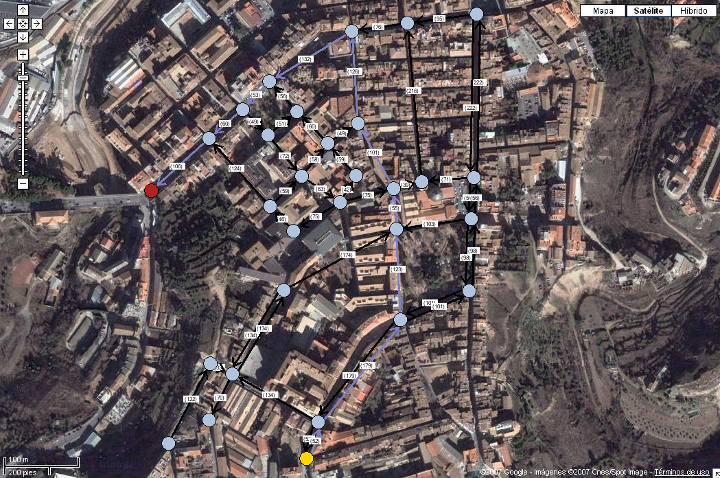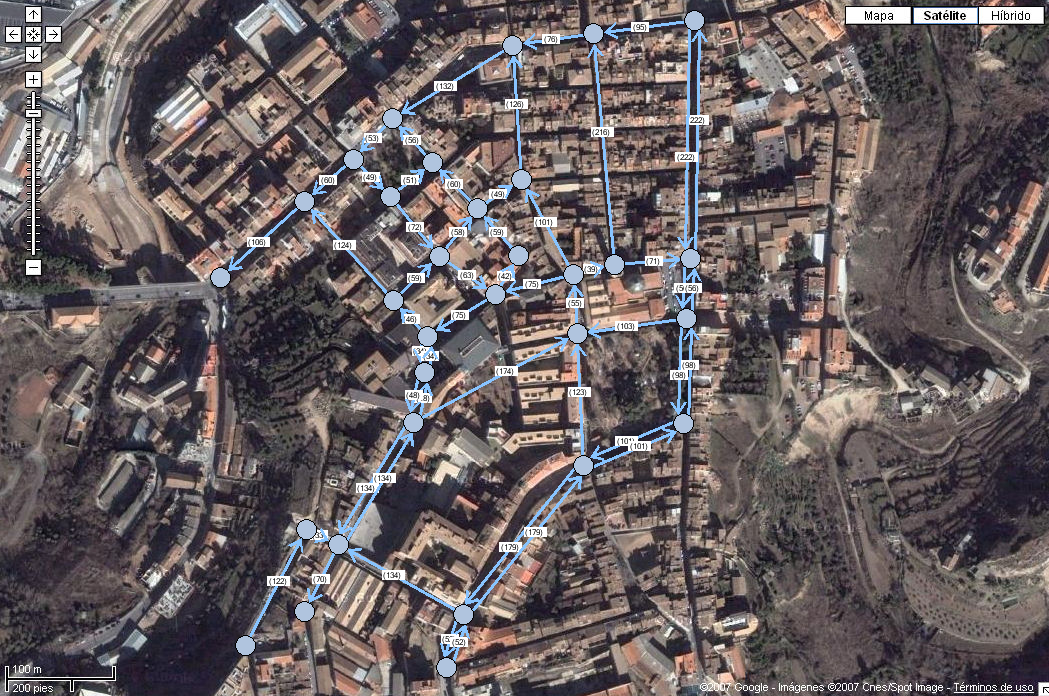 La siguiente imagen muestra el grafo simplificado del centro de la ciudad: