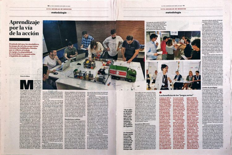 En el especial “Escuelas de negocio” de las páginas salmón de El País, publican hoy el artículo “Aprendizaje por la vía de la acción” de Elena Sevillano, donde se hace referencia a mi trabajo LLOG. Si os interesa, podéis descargar una copia en formato PDF desde aquí. También podéis leer los artículos de LLOG y de LLOG VR en este blog.
