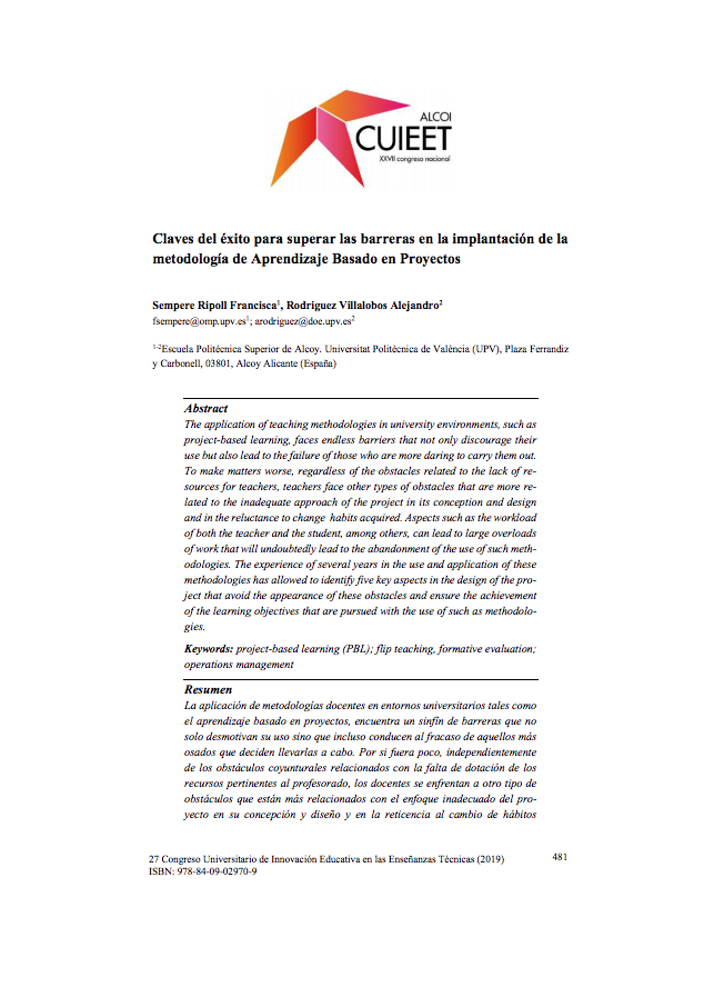 Artículo: Claves del éxito para superar las barreras en la implantación de la metodología de Aprendizaje Basado en Proyectos